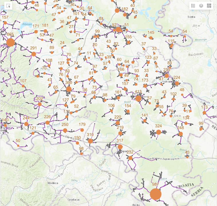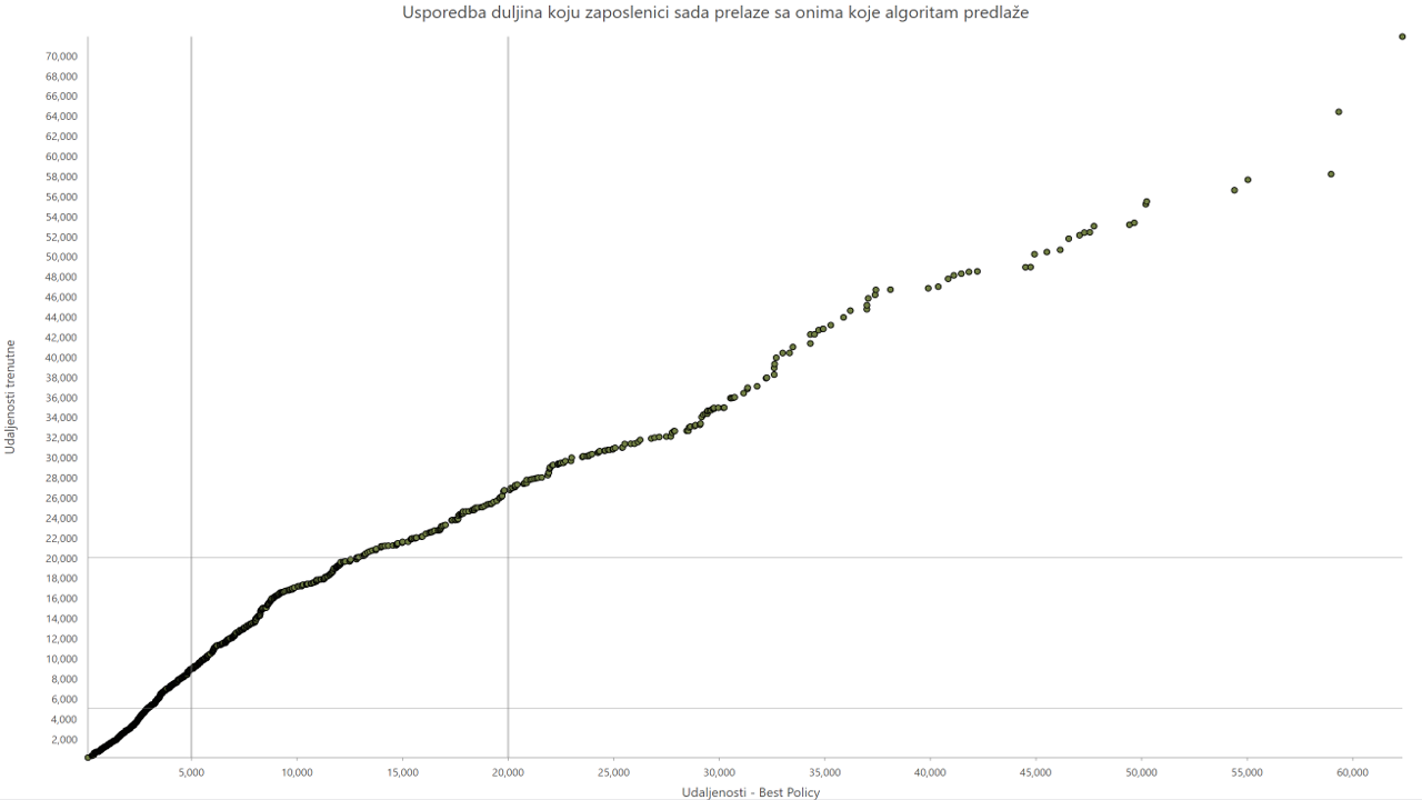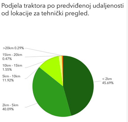 Rezultat analize ruta od poznatih točaka do idealnih prethodno korištenih i verificiranih lokacija. U ovom slučaju se radi o traktorima koji moraju obaviti tehnički pregled te su parametri dosta složeni jer je cilj da traktori prođu što manju udaljenost, ali je ujedno cilj da klijent sa svojim resursima može pokriti broj lokacija.